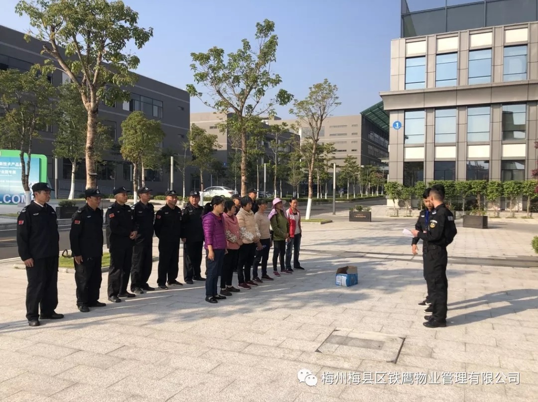2019年11月8日,时至立冬,梅州梅县区铁鹰物业管理有限公司为了增强安保人员的消防安全意识,在广梅绿色创新中心进行消防安全知识讲解和消防演练。