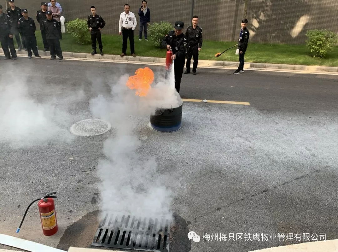 图:安保人员正在使用灭火器进行灭火演习